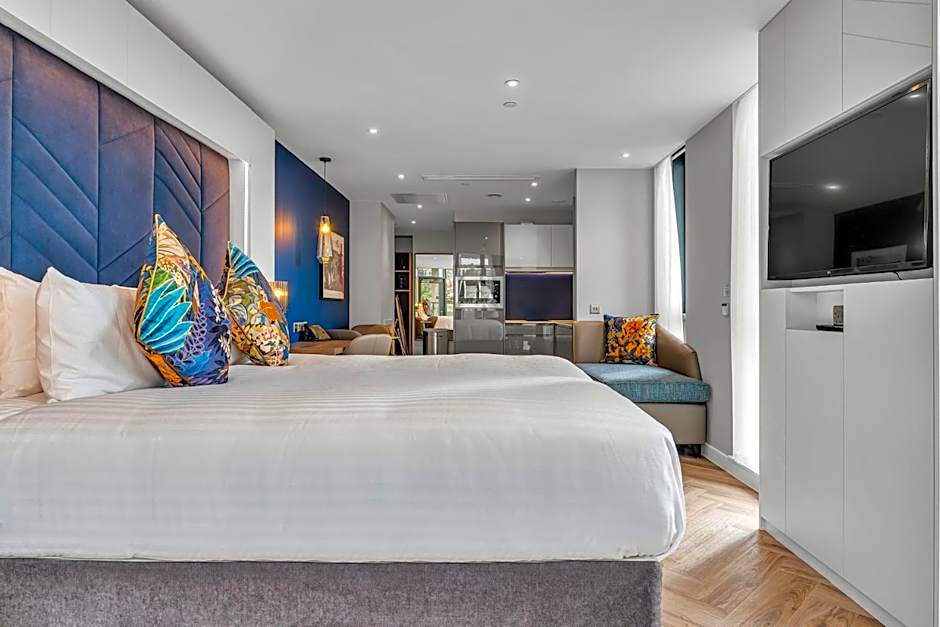 This air-conditioned suite is consisted of of 1 living room, 1 separate bedroom and 1 bathroom with a bath. Guests can make meals in the kitchen that comes with a stovetop, a refrigerator, a dishwasher and kitchenware. Featuring a balcony with city views, this suite also offers a tea and coffee maker and a flat-screen TV. The unit offers 1 bed.
